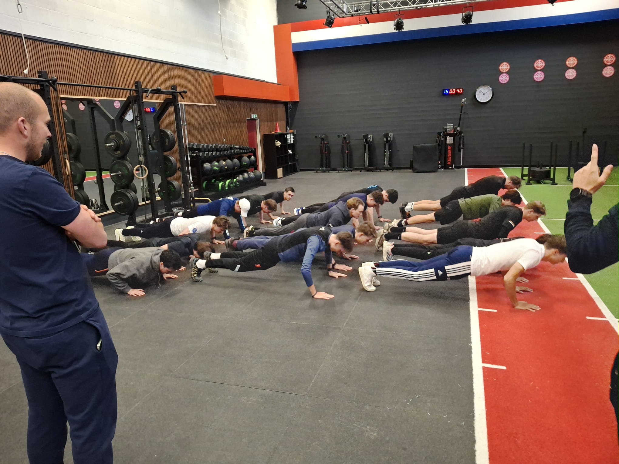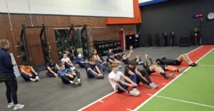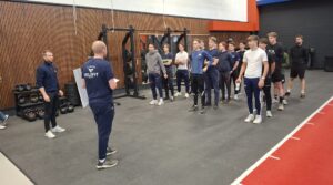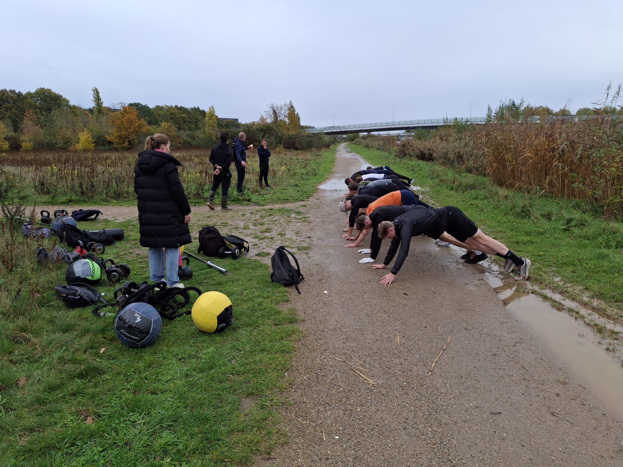 Na de indoor warming-up, waarbij het toch al even pijn deed, werd er buiten, met honderden kilo’s ‘bagage’, verder gewerkt. Bagage dat de grond niet mocht aanraken!
