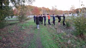 Onder aanvoering van drillmeester Robbie van Velofit werden de 16 aanwezige renners (een deel had crossverplichtingen, tentamenweek of woont op tienduizenden kilometers afstand) stevig onder handen genomen. Allereerst in de zaal, vervolgens een 3,5 uur lang traject buiten. Communicatie, samenwerking, discipline, doorzettingsvermogen en plezier waren de keywords van de dag.