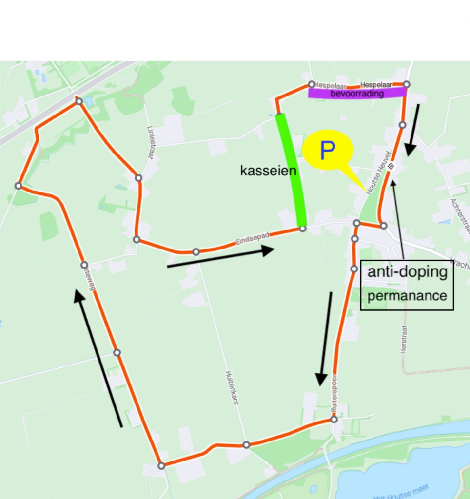 Start en finish zijn op de Houtse Heuvel in Den Hout. De wedstrijd start om 13:00u en de finish wordt verwacht om 17:11u.
