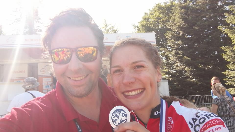 In de middag reden de vrouwen van het Loving Potatoes-DJR Ladies Cycling Team hun wedstrijd tussen de wereldtop. Yara Kastelijn zat mee in de beslissende kopgroep met o.a. Van Vleuten, Vos, Brand, Blaak en van de Breggen. Maar Yara reed haar eigen kampioenschap tussen de professionele rensters, namelijk die om de Nederlandse titel vrouwen zonder contract. Haar strijd leverde uiteindelijk zilver op. Een super mooi resultaat!