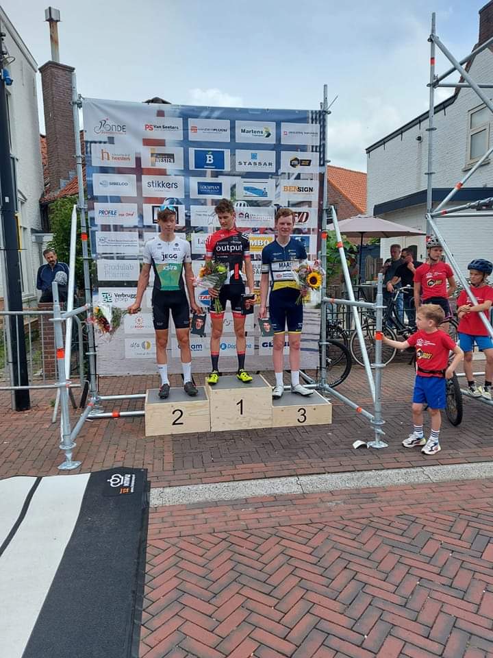 Maikel Stam reed in Raamsdonksveer een hele sterke koers. Halverwege de wedstrijd reed hij met een vijftal koplopers weg uit het peloton en na verloop van tijd bleven ze met zijn drieën over en wisteb het peloton te dubbelen. Maikel had de juiste benen en kon in de sprint zijn medevluchters Timo de Jong en Bas van Belle met overmacht verslaan.