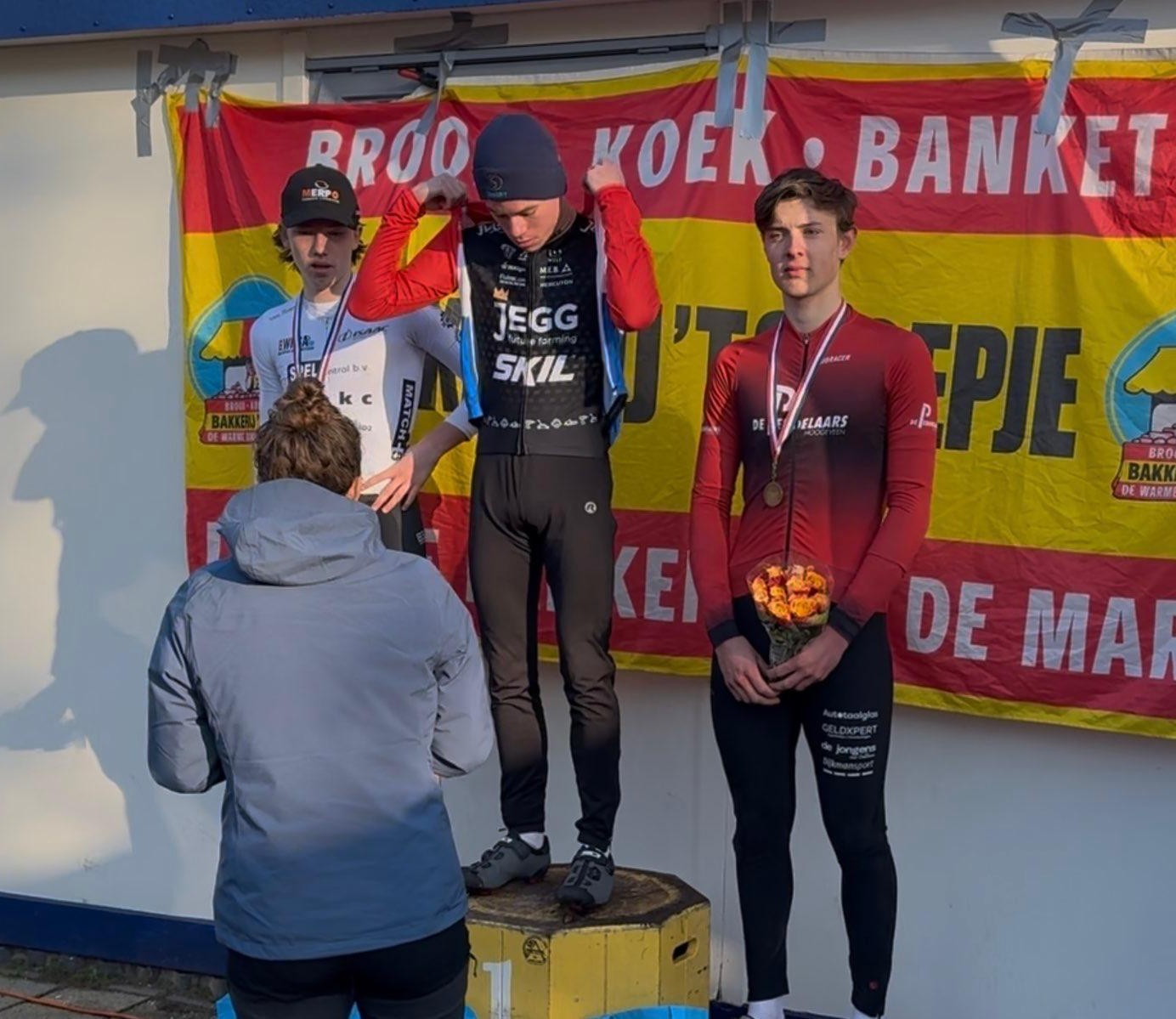 Mees de Vos van de Oosterhoutse wielervereniging JEGG-SKIL-DJR is afgelopen zondag, bij de beloften (U23), in Hilversum eerste geworden bij het Nederlands kampioenschap veldrijden voor studenten. Voor Mees was het parcours in Hilversum bij GWC De Adelaar, met een kort rondje met veel bochten en de balken voor de finish waar snelheid gemaakt kon worden, iets waar hij met zijn technische vaardigheden wel raad mee wist.