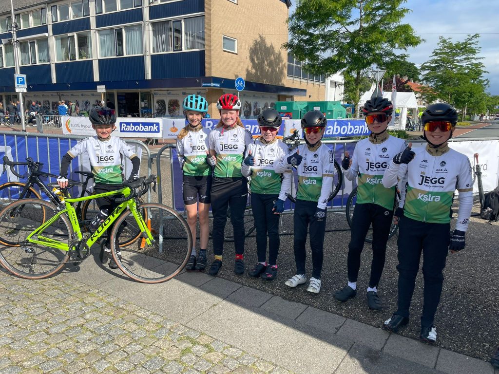 Teun Smeekens wist zich in jeugdcategorie 2 goed te manifesteren. Ook hij wist steeds goed voorin te handhaven en reed in de sprint naar een mooie verdiende derde plaats. En in de jeugdcategorie 3 waren de meiden van wielerverenging JEGG-DJR Academy goed bezig. Mila Prins wist zich de hele koers voorin te handhaven en kwam in een sprint met bijna alle renners als zesde over de streep. Voor Heleen van der Fluit was het haar tweede wedstrijd. In het begin kon ze goed mee in het peloton maar uiteindelijk moest ze het peloton laten gaan en finishte toch nog verdienstelijk als tiende. Mila Prins kwam met haar prestatie toch nog op het podium en werd keurig derde bij de meisjes.