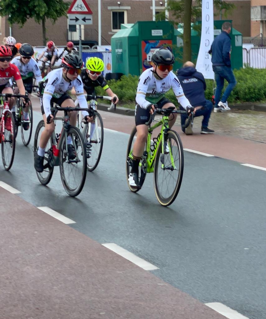 Finn en Levi domineerden de koers reden aanvallend en waren voortdurend nadrukkelijk voorin aanwezig. Levi van der Kaa kwam in de laatste als eerste uit de laatste bocht en begon direct van kop af aan te sprinten. Finn Klaus kon daardoor heel sterk van achter komen en mondde het uit in een spannende sprint tussen de twee ploeggenoten van JEGG-DJR Academy waarbij Finn als eerste over de meet kwam. Jamie Cornelis wist zich heel goed in het peloton gebleven en eindigde ook bij de eerste tien. Hij werd tiende. Bij de meisjes verdedigden Luna Wolterink en Milou van Oord de clubkleuren en wisten ondanks het voor hen iets te hoge tempo de wedstrijd uit te rijden en finishten respectievelijk op elfde en de twaalfde plaats.