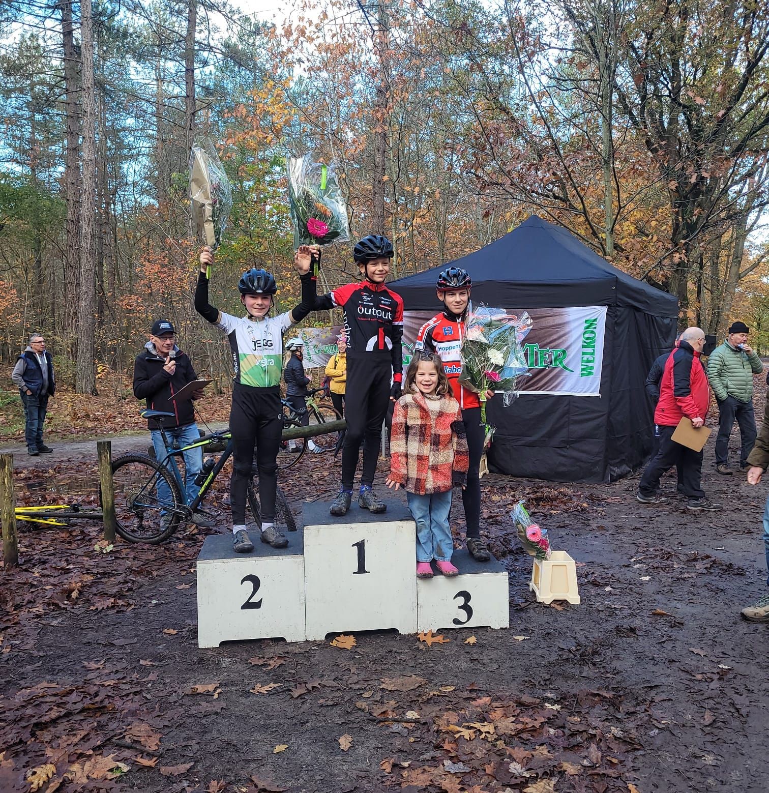 Ondanks een kleine valpartij en een vierde plaats wist Levi van der Kaa, afgelopen zondag 12 november, zijn leidende positie in de Jan van Arckel wintercompetitie te consolideren en daarmee ook de groene trui waarin hij al van start ging. Milou van Oord had een niet te beste start en het modderige parcours maakt het er ook niet gemakkelijker. Toch wist Milou uiteindelijk bij de meisjes derde te worden en daarmee op het podium te komen.
