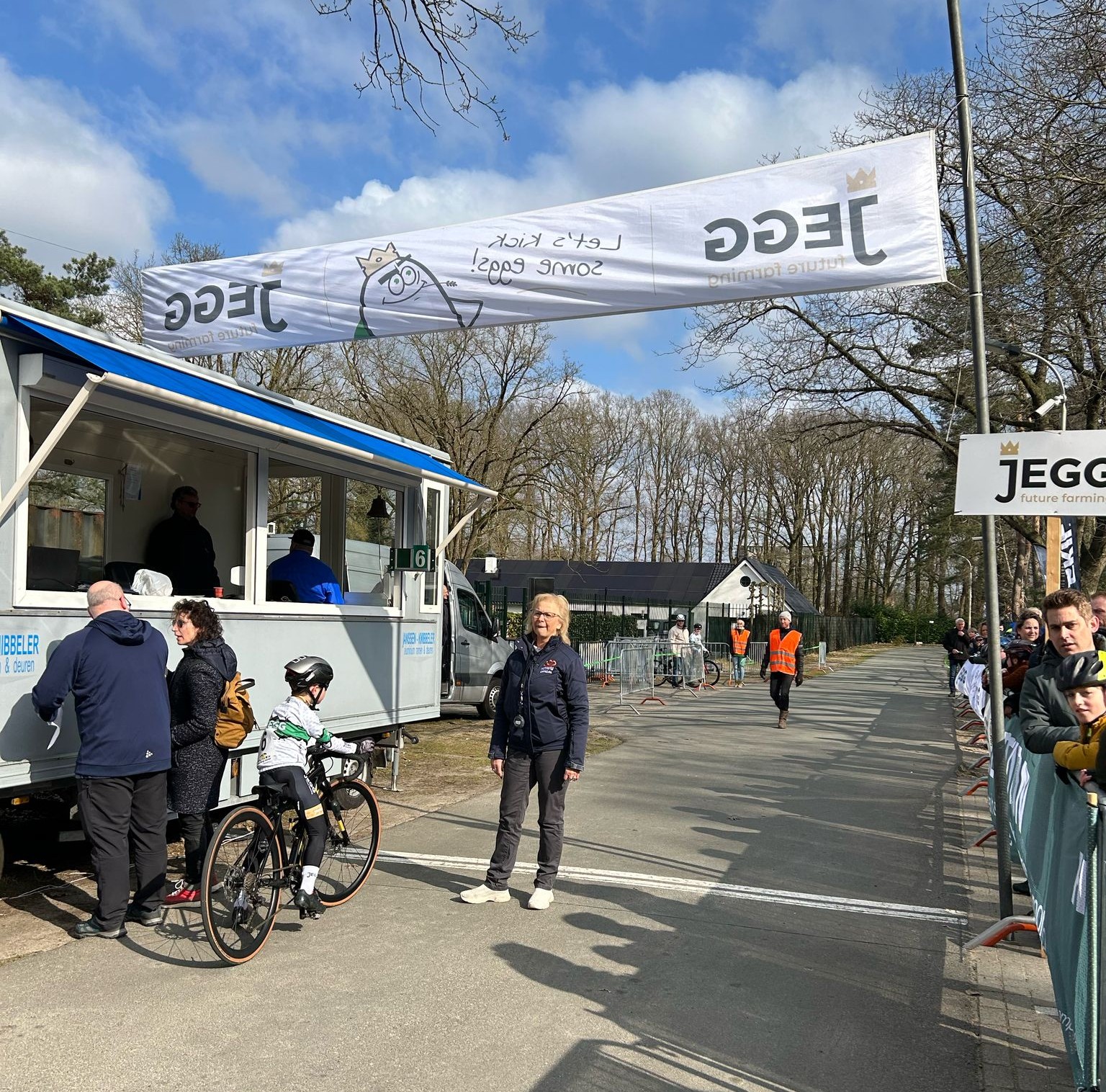 Afgelopen zaterdag (15 mrt) stonden de jeugdrenners van de Oosterhoutse wielervereniging aan de start van de JEGG-SKIL Jeugdronde. Voor hen een thuiswedstrijd want het parcours aan de Bredaseweg kennen ze op hun duimpje. Morris van Miert (categorie 1) en Faas van Mook (categorie 3) wisten dit in hun voordeel om te buigen en wonnen in hun categorie de koers. Morris vertrok in een veld van 11 vertrekkers met een vliegende start en zat meteen in de kopgroep. Na de eerste ronde ging hij er met de latere nummer twee vandoor. Morris inmiddels gepokt gemazeld in het lezen van de koers, wist in de finale zijn concurrent te verschalken met een splijtende demarrage en kwam met grote voorspong alleen als eerste over de meet.