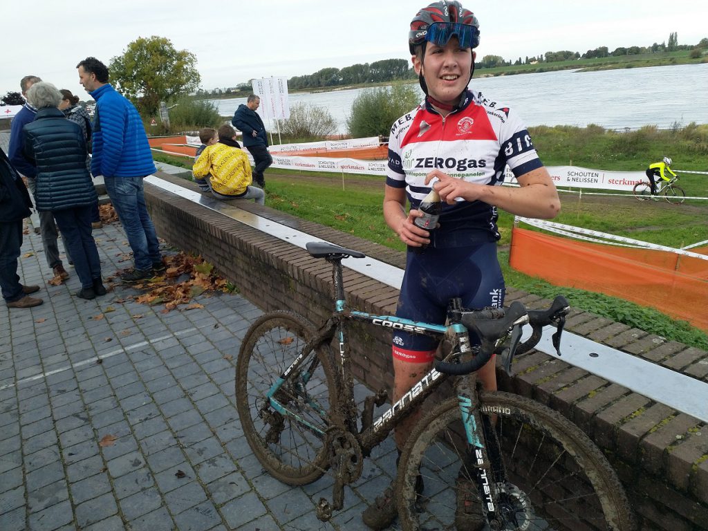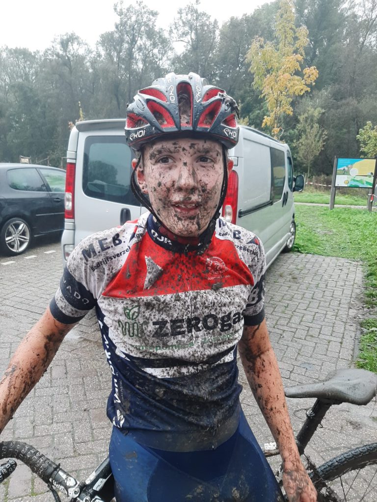 De WBVC-cross in Rucphen deed Jari als training met een categorie hoger mee, maar toch won hij knap van verschillende junioren. Dan Rhoon… dat was echt blubberen en zowaar geen pech. Mooie vijfde plek was het resultaat.
