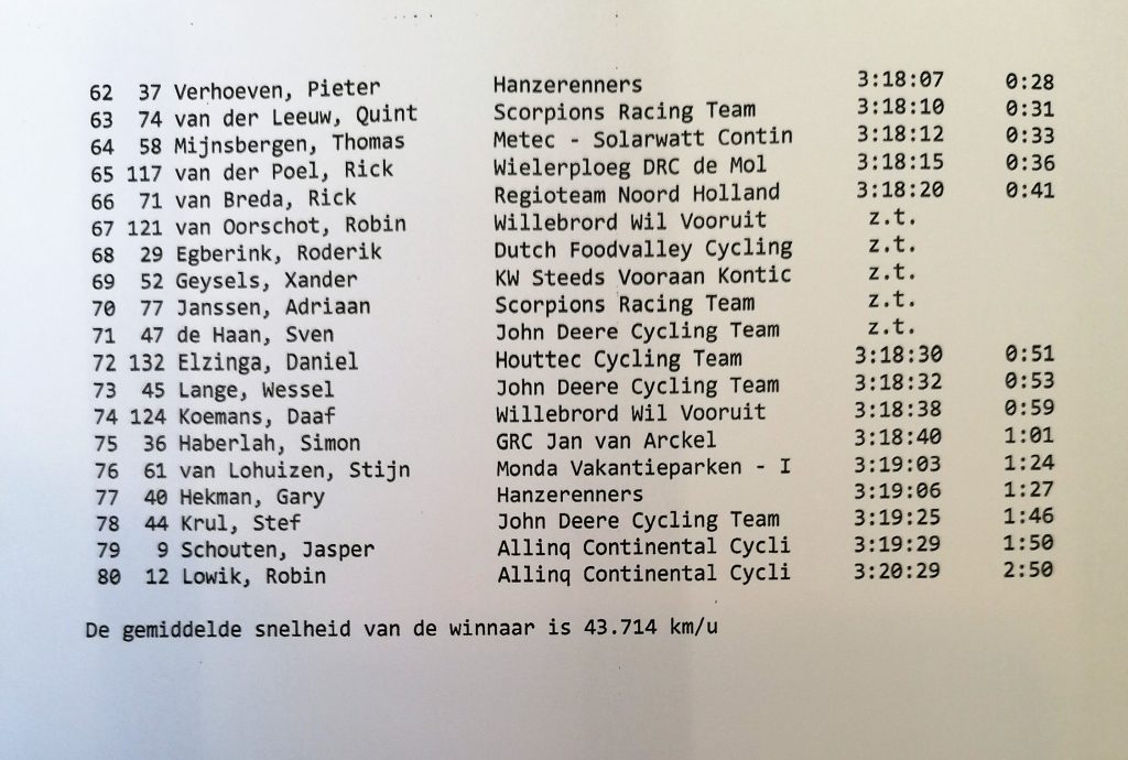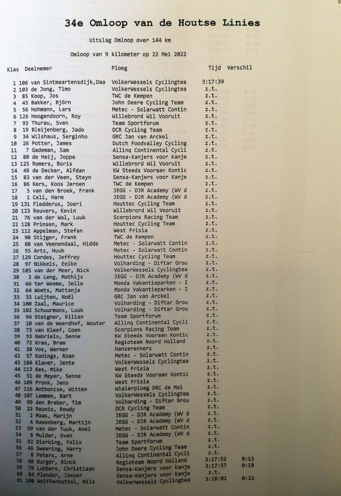 Uitslag Omloop van de Houtse Linies 22 mei 2022